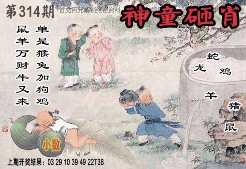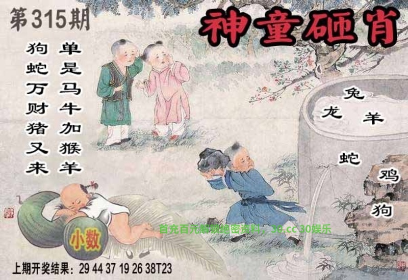 314期:【神童砸肖解析】开:羊23 鼠羊万财牛又来 单是猴兔加狗鸡 解析:明肖鼠羊牛猴兔狗鸡 六肖:鼠羊牛猴兔狗 |