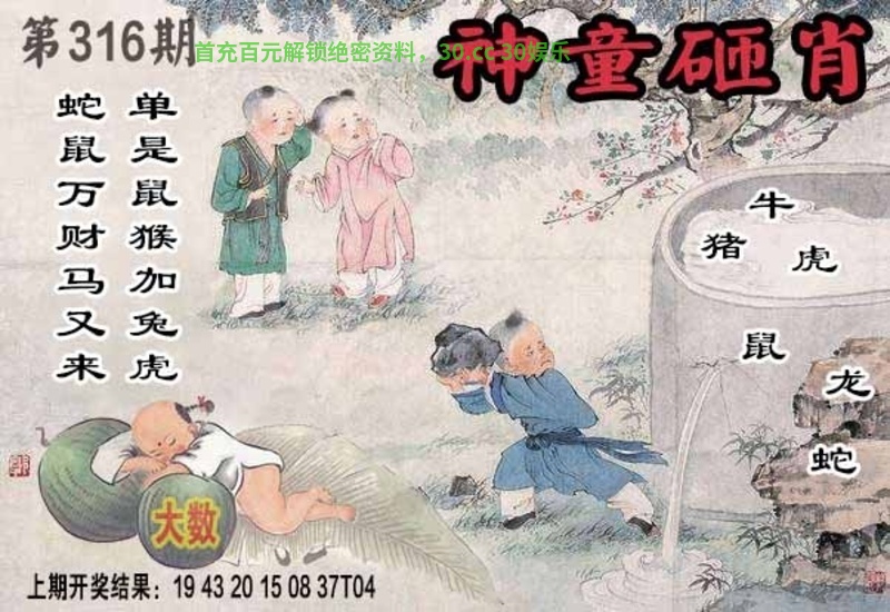316期:【神童砸肖解析】开:马24 蛇鼠万财马又来 单是鼠猴加兔虎 解析:明肖蛇鼠马猴兔虎 六肖:蛇鼠马猴兔虎 |