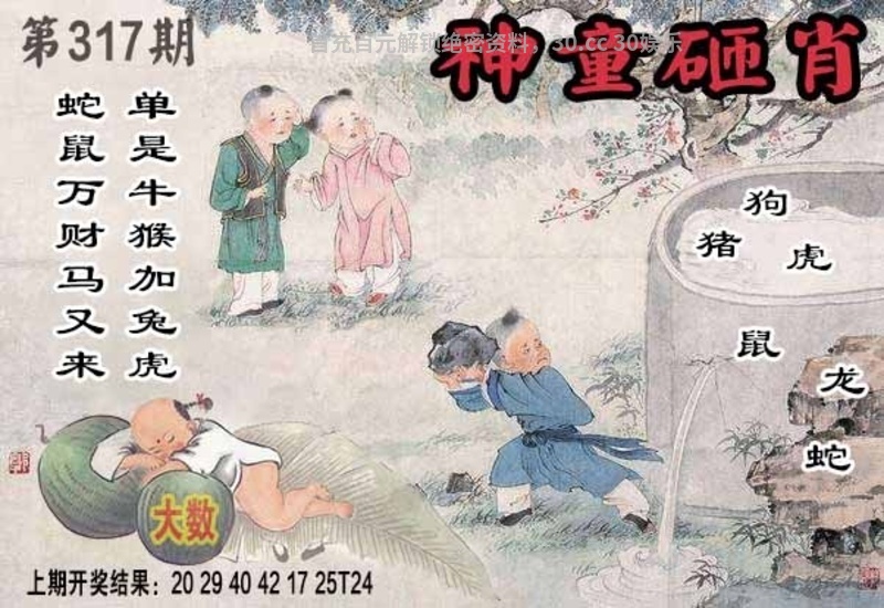 317期:【神童砸肖解析】开:鼠18 蛇鼠万财马又来 单是牛猴加兔虎 解析:明肖蛇鼠马牛猴兔虎 六肖:蛇鼠马牛猴兔 |